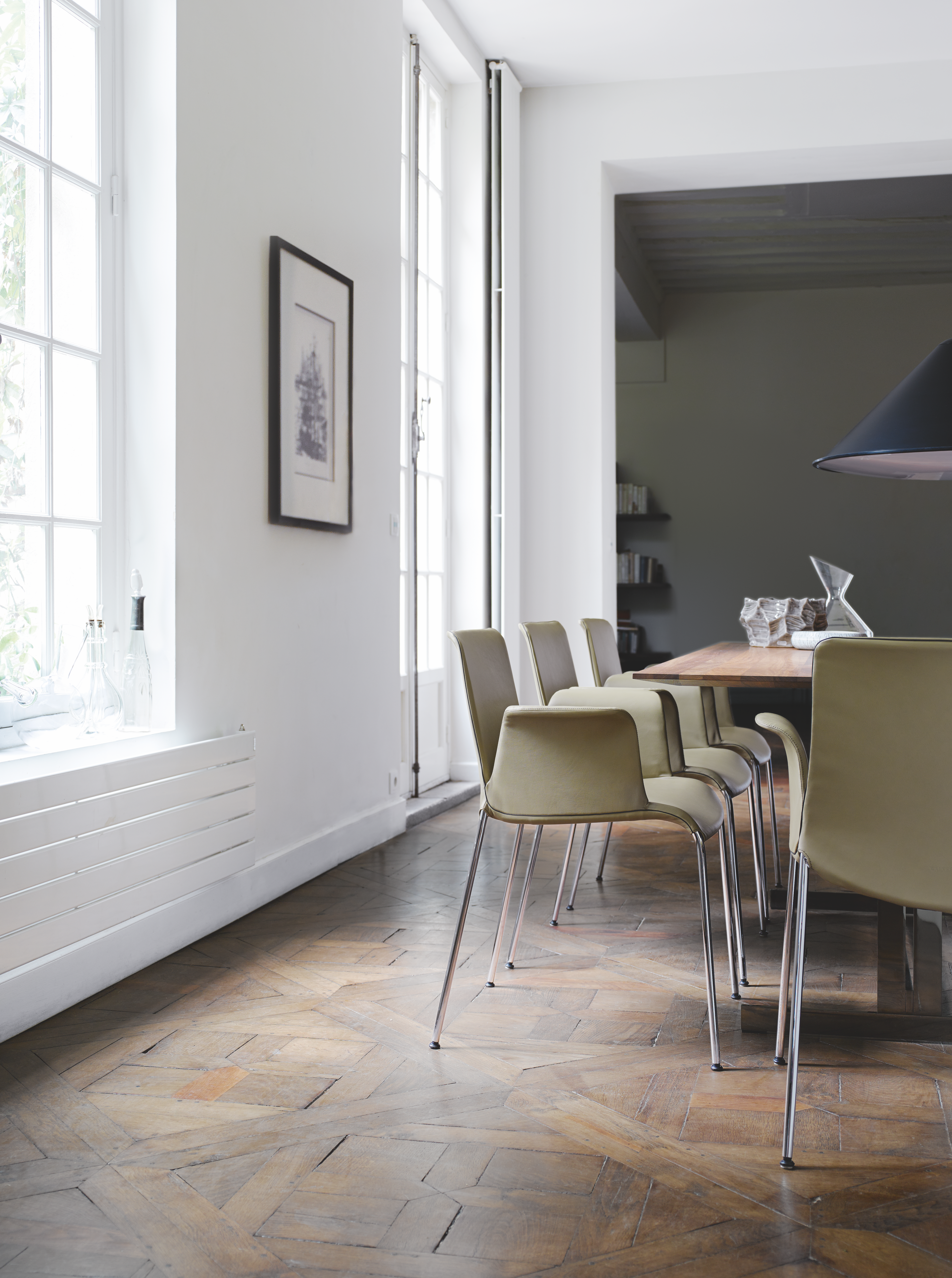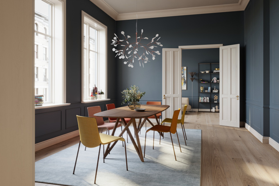 Schwingende Linien prägen die Silhouette des Stuhls –