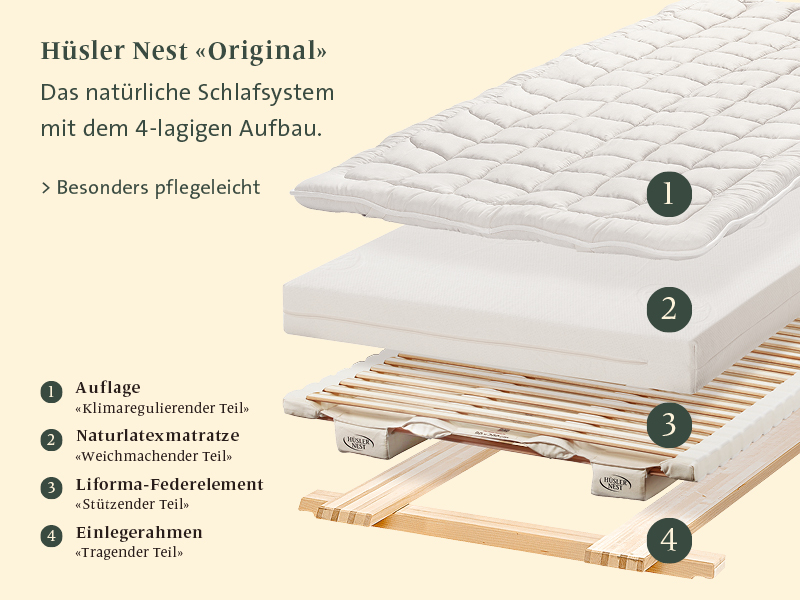 Ob Liforma-Schlafsystem, Naturlatexmatratze oder ausgewählte Textilien – jedes Produkt von Hüsler Nest ist darauf ausgelegt, gesunden Schlaf zu fördern. Unser Team nimmt sich Zeit, auf individuelle Bedürfnisse einzugehen und gemeinsam mit Ihnen die Lösungen zu finden, die wirklich passen. So entsteht ein Schlafumfeld, das langfristig Energie schenkt und den Alltag bereichert.