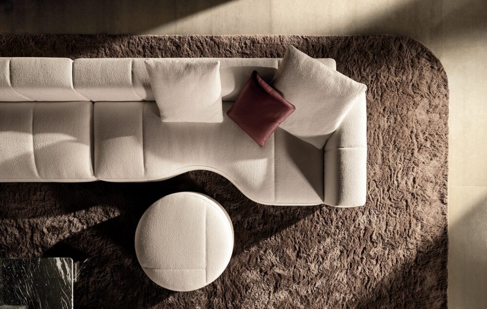 Die Yves Sofakollektion vereint Flexibilität, Form und Funktion. Inspiriert von den 70er Jahren, bietet Yves gemütliche Konfigurationen mit fließenden, einteiligen Sitzflächen und dynamischen Couture-Details. Die asymmetrischen Nähte und die ungewöhnliche Position der Aluminiumfüße verleihen dem Design eine besondere architektonische Sprache.