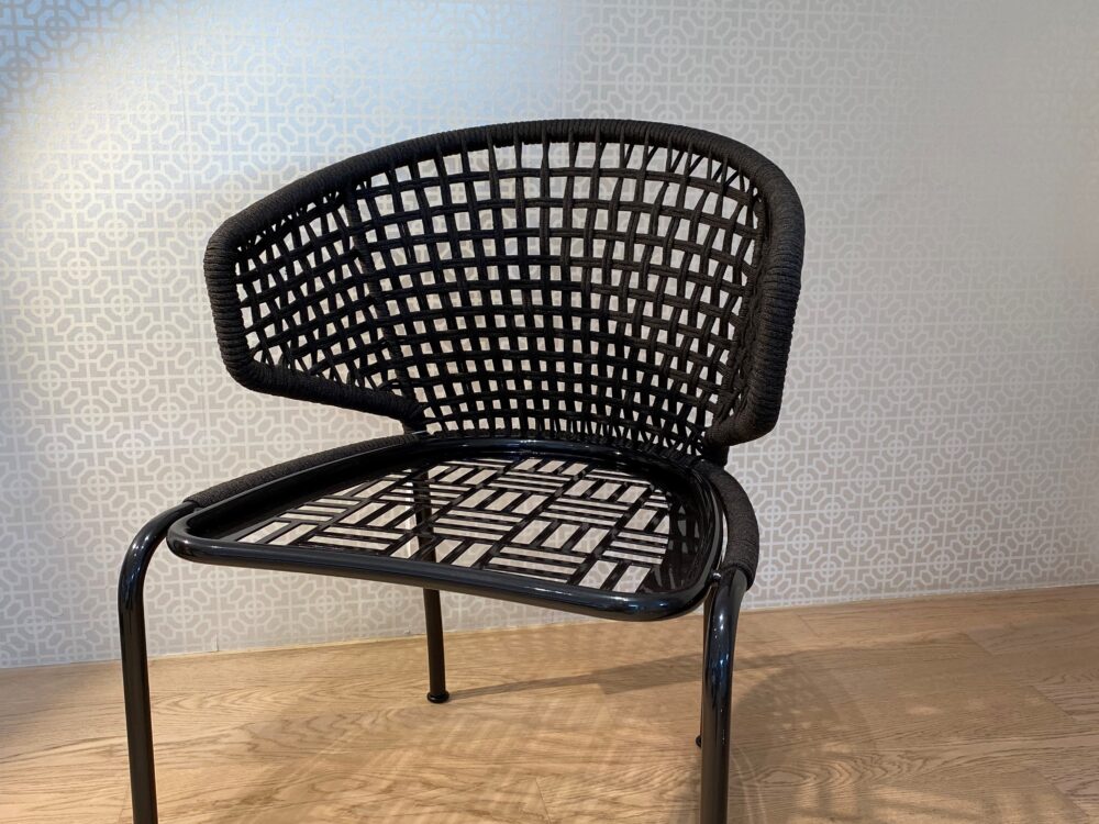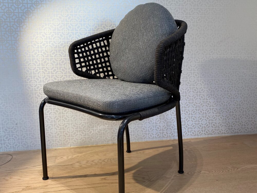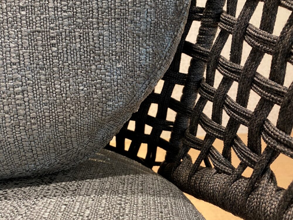 | Details | Stoffbezug Salvador Farbe 07 peltro Preiskategorie G Geflecht dunkelbraun Gestell glänzend zinnfarbig lackiert Breite 60cm Höhe 80cm Sitzhöhe 46cm |