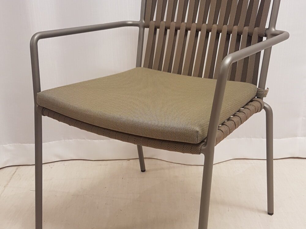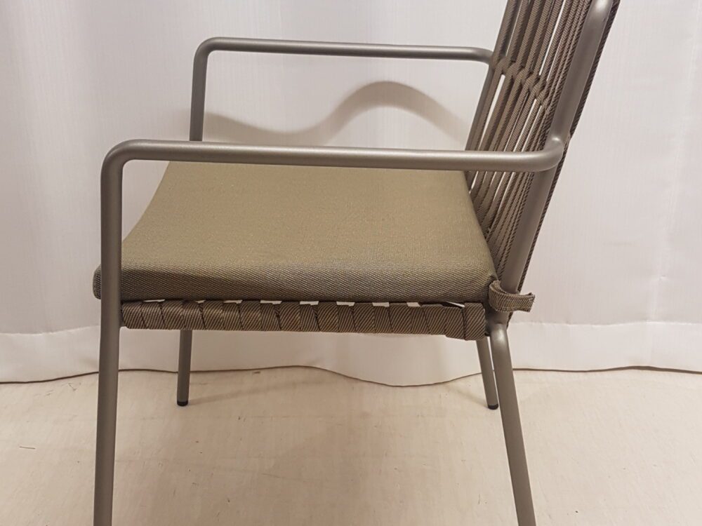 | Details | Kettal Dining Armchair NET 68100-40A-0C Special Aluminium in 105 Galena Rope & Bela 453 Honeysuckle Sitzkissen 313 Olive Laminat 68105-009-00 Special 2 Stühle Gesamtpreis 1120.- |