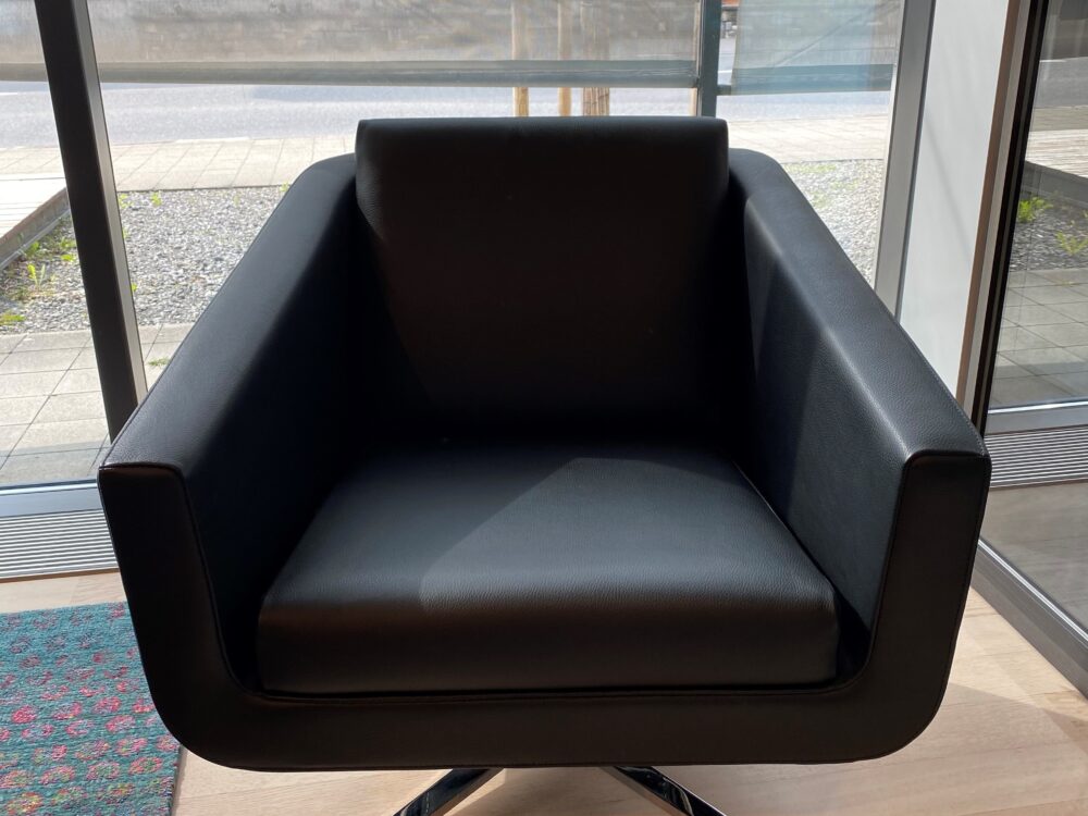 | Details | FM-0131/11 mit Funktion, 4-Stern Drehfuss Gestell hochglanz verchromt Bezug Leder A 99 black B 74 cm, T 82-147 cm, H 76-111 cm, ST 53/102 cm, SH 44 cm |