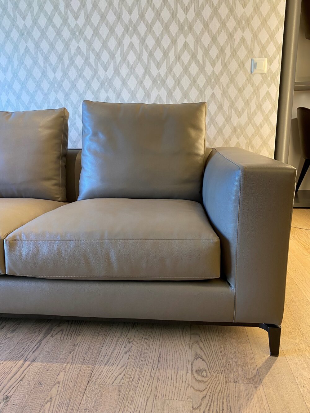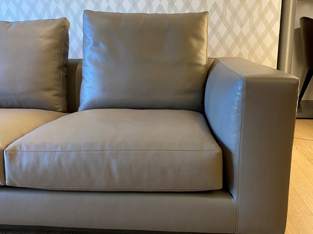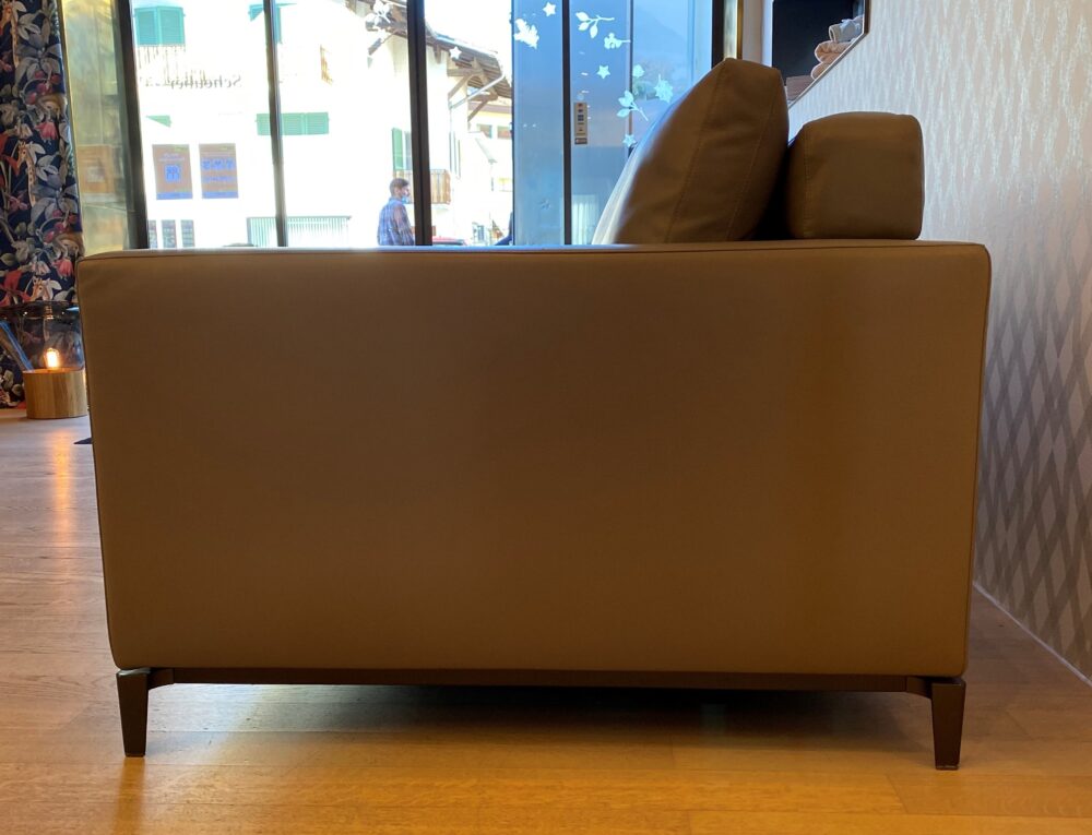 Details | Modell Andersen AND247 inkl. Kopfstütze 60 cm AND60P Bezug Leder Must col. 02 Fango, Pelle Extra Metallfüsse mit zinnfarbenem Extraglanz-Finish B 247 cm, T 103 cm, H 82 cm, SH 42 cm |